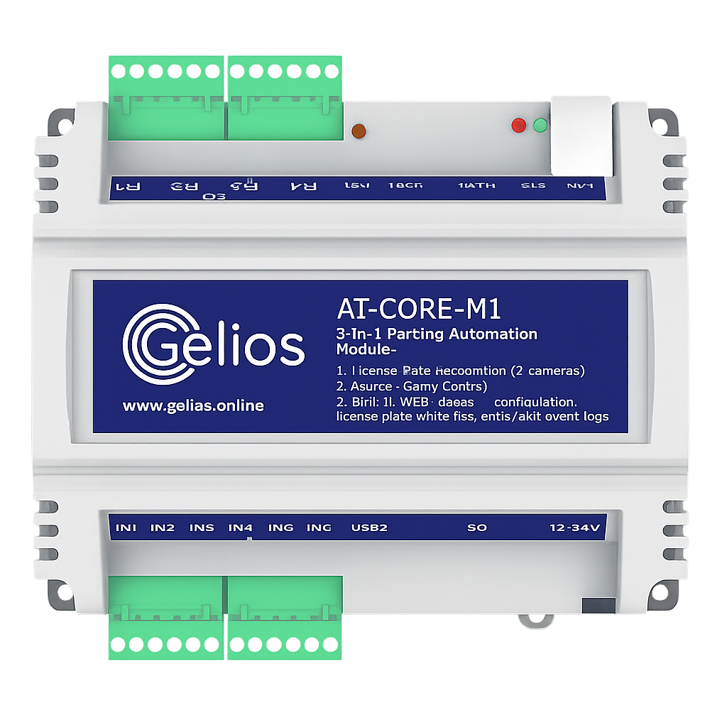 GELIOS AI-CORE-M1 funciona de forma completamente autónoma, sin servidores, servicios en la nube ni Internet. Todos los datos (listas blancas, tarjetas de visitantes, registros de paso y capturas con matrículas reconocidas) se almacenan dentro del propio módulo. No se requieren mantenimientos ni pagos mensuales.